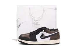 Jordan Эйр 1 устойчивые к истиранию кроссовки мужские низкие винтажные баскетбольные черно-коричневые белые, цвет White 553558-081(team拾伍-男女同款黑棕sbox) | white