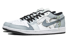 Jordan Эйр 1 Уникальная Инновация Противоскользящие Износостойкие Низкие Винтажные Баскетбольные Кроссовки Мужские Серо-Голубые, цвет Gray Blue 553558-131(team853-男款青竹与蛇) | gray blue