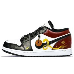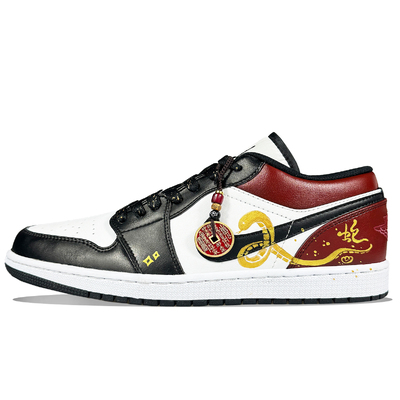 Jordan Кроссовки мужские Air 1 с амортизацией, противоскользящие, низкие, винтажные, черно-красные, цвет Black Red 553558-132(team667-金蛇狂舞) | black red
