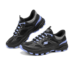 Skechers Женские повседневные низкие кроссовки устойчивые к истиранию черно-синие с логотипом бренда и сумкой для покупок, цвет Black Blue+Brand Logo Shopping Bag 180317-bkpr | black blue+brand logo shopping bag