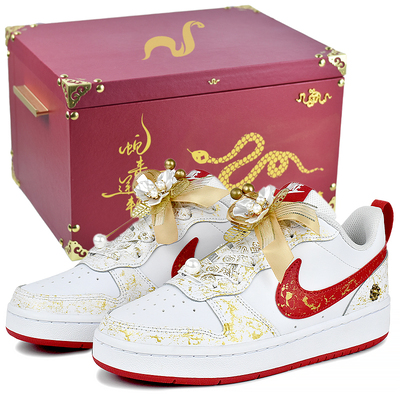 Nike Кроссовки для скейтбординга Court Borough 2 облегченные низкие женские бело-золотые бело-золотые подарочная коробка 3, цвет White Gold-Gift Box 3 bq5448-103(team96-金糖泡泡s-box) | white gold-gift box 3
