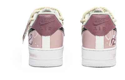 Женские скейтерские кроссовки Nike Air Force 1 Abrasion Resistant Low Top розово-фиолетовые с принтом в виде сумки для покупок, цвет Pink Purple Stamp Shopping Bag dd8959-100(team1110-粉紫邮票s-box) | pink purple stamp shopping bag
