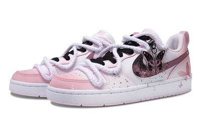Nike Кроссовки для скейтбординга Court Borough Butterfly Dreams с противоскользящей подошвой и износостойким покрытием, низкие, детские, черно-розовые, цвет Black Pink dv5456-105(team420-蝴蝶梦境) | black pink