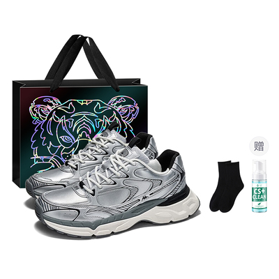 Kappa Кроссовки унисекс с амортизацией противоскользящие износостойкие низкие массивные серебристые, цвет Silver (Black Tiger Shopping Bag Clothing Sets) k0ey5mc14cj-171a-zl(礼袋套装) | silver (black tiger shopping bag clothing sets)