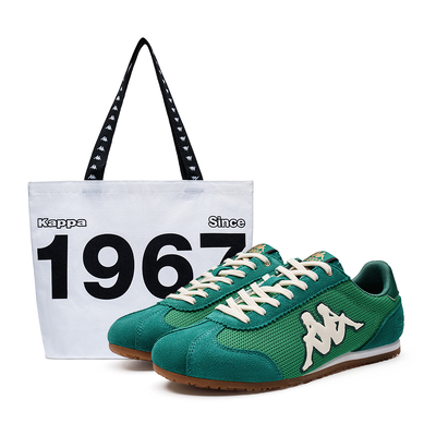 Kappa O.Lite70 противоскользящие износостойкие низкие скейтерские кеды унисекс зелёно-белые Cedar Green/Classic White [в комплекте розовая сумка для покупок и брелок] k0fw5mm46cj-3622 | cedar green/classic white[comes with pink shopping bag+keychain]