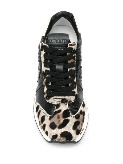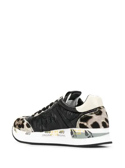 Кроссовки Conny от Premiata (Премиата). Закругленный носок, шнуровка спереди, заплатка с логотипом на язычке, уплотненная щиколотка, дизайн с аппликацией и резиновая подошва. Цвет: черный.