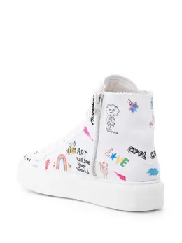 Подробнее о товаре: • белый • хлопок • канвас • сплошной графичный принт • вышитый логотип спереди • язычок с вышитым логотипом • декоративная строчка • закругленный носок • шнуровка спереди • застежка на молнии сбоку • стелька с логотипом • плоская резиновая платформа с тисненым логотипом • длина по щиколотку