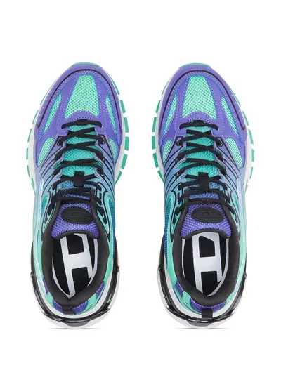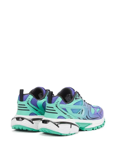 Подробнее о товаре: Насыщенно-фиолетовый, бирюзовый, мятно-зеленый, стиль колор-блок, сетчатые вставки, градиентный эффект, нашивка с логотипом сбоку, нашивка с логотипом на язычке, петля для подтягивания сзади, миндалевидный носок, шнуровка спереди, стелька с логотипом и массивная резиновая подошва.
