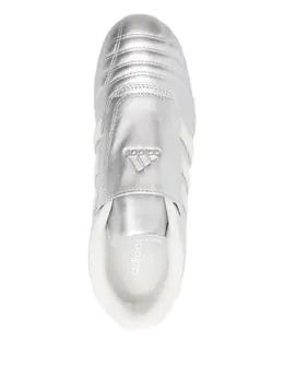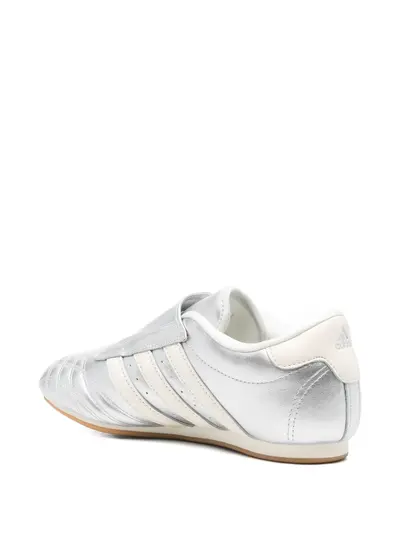 Серебристые низкие кеды из металлизированной кожи с тремя полосками, застежкой-липучкой и округлым носком