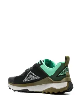 Черный, разноцветный, дизайн колор-блок, сетчатые вставки, боковые вставки с логотипом, язычок с логотипом, петля для подтягивания сзади, закругленный носок, шнуровка спереди и плоская резиновая подошва.