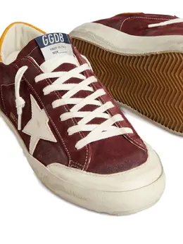 Бордовый верх из замшевой кожи декор в виде ламинированной звезды кожаная вставка на пятке белая резиновая подошва