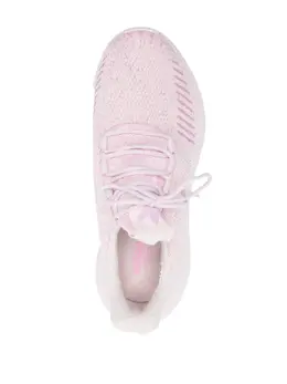 Светло-розовый, вязаные вставки, нашивка с логотипом на язычке, стелька с логотипом, закругленный носок, шнуровка спереди и плоская резиновая подошва.