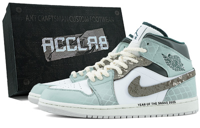 Jordan Баскетбольные кроссовки Air 1 Cushioning, износостойкие, среднего размера, винтажные, мужские, белые, зеленые fq7720-103(team349-绿澜幻蝮礼盒) | white green