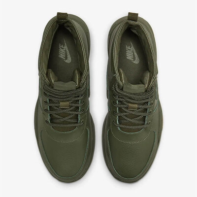 Практичность аутдора с городским видом. Мужские кроссовки Air Max Goaterra 2.0 "Cargo Khaki" от Nike. Верх кроссовок выполнен из натуральной кожи, обработанной водоотталкивающей пропиткой и дополнен увеличенным мидсолем с блоком Air в области пятки. Минималистский подход в дизайне выражен единым цветом исполнения. Даже верёвочные толстые шнурки повторяют основной оттенок исполнения. Подошва Phylon с крупным протектором обеспечивает комфортную амортизацию и наилучшее сцепление с поверхностью.