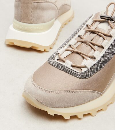 Кроссовки Runner из замши и парусины Brunello Cucinelli, Ice p01058343 | ice