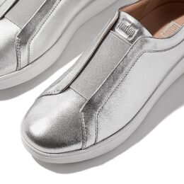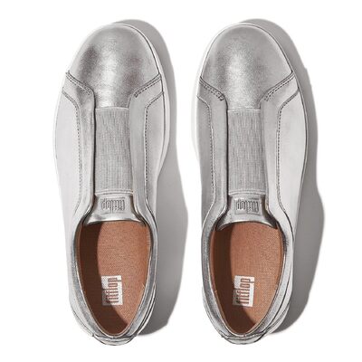 Кроссовки Fitflop Rally Elastic Metallic Leather Slip-On Sneakers, серебряный 9932013 | silver