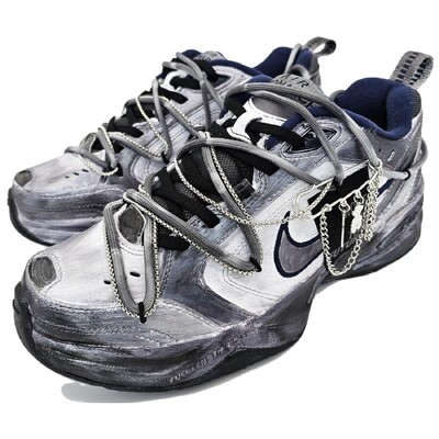 Кастомизированные кроссовки Nike Air Monarch 4 Chunky Sneakers Unisex, серебряный 415445-102(team66-钛银骇客) | electroplating liquid titanium silver