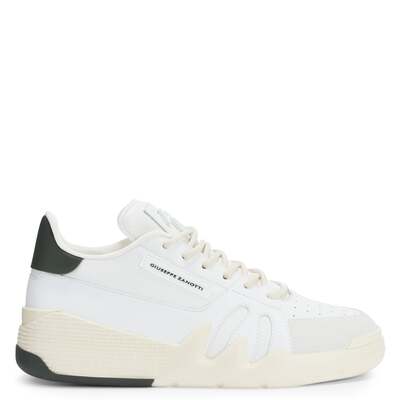 Мужские кроссовкиТемно-зеленая и белая кожа и белая синтетическая тканьБелый лакированный металл «Signature»Белая прорезиненная «Этикетка Signature»Внутренняя подкладка из белой технической тканиРезиновая подошва бежевого и темно-зеленого цветов с логотипомСделано в Италии
