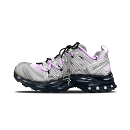 Эти кроссовки изготовлены по индивидуальному заказу и изготовлены из оригинальной ткани для активного отдыха, синтетической кожи, амортизирующей и противоскользящей, с низким верхом, унисекс, в серо-сером и серебристо-сером цветах. Артикул: 416175. Вдохновленные сочетанием активного отдыха и моды, они основаны на классическом силуэте Salomon: светло-фиолетовые шнурки добавляют мягкости, черные брызги краски, имитирующие горную грязь, и металлические украшения добавляют модный штрих. Сочетая в себе прочность походных кроссовок и модную изобретательность, эти кроссовки становятся «символом моды для активного отдыха» на ходу, выражая индивидуальность и стремление к познанию с каждым шагом.
