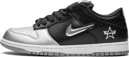 Supreme x Nike SB Dunk Low «Jewel Swoosh Silver» - одна из трех расцветок, выпущенных осенью 2019 года в рамках сотрудничества Supreme и Nike SB. Тематика коллекции вдохновлена кроссовками Nike Air Force 1 Mids середины 90-х годов, которые отличались двухцветными цветовыми блоками и металлической отделкой Swoosh с драгоценными камнями. Верх SB Dunk Low выполнен из черной кожи с перфорированным носком цвета металлик и серебра. На средней панели расположен серебряный Swoosh с драгоценными камнями, а на пятке вышит логотип Supreme в виде звезды. Логотип Nike также присутствует на мягкой петельке язычка и вышит серебряным цветом на пятке. Завершают дизайн белая межподошва и серебристая подошва. Supreme x Nike SB Dunk Low «Jewel Swoosh» в черном и серебристом цветах были выпущены 5 сентября 2019 года.