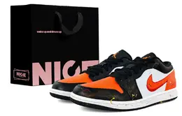 Кроссовки Air 1 устойчивые к истиранию низкие винтажные баскетбольные unisex Black White Orange Jordan, черный белый оранжевый 553558-081(team1453-炽焰风驰ld黑) | black white orange