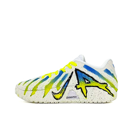Эти кастомизированные кроссовки созданы на основе оригинальных баскетбольных кроссовок Nike Ja 3 Morant EP Low-Top для мужчин в чёрно-белом цвете. Основная концепция дизайна - **симбиоз уличного искусства и остроты площадки**, глубоко интегрирующий динамическое напряжение баскетбола со свободным выражением граффити. Визуально красочные мазки кисти на кроссовках напоминают уличные граффити, нарисованные от руки; жёлтые и синие градиентные линии не только воспроизводят динамическую траекторию «молниеносных атак» Моранта, но и разрушают стереотип о спортивном инвентаре художественными штрихами, превращая площадку в продолжение уличного искусства. Увеличенный логотип «JA» не только является ярким символом идентичности звёздного игрока, но и усиливает запоминаемость бренда благодаря своему визуальному эффекту, напоминающему граффити.