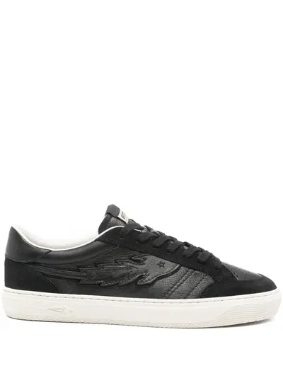 Черный цвет, панельный дизайн, аппликация, перфорированный мысок, резиновая подошва, шнуровка спереди