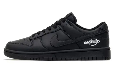 Эти кастомные кроссовки основаны на оригинальной мужской модели Nike Dunk Low. Эти скейтерские кроссовки Nike x SACRED отличаются минималистичным чёрным дизайном, сочетающим уличную культуру и сдержанный стиль; фон представляет собой совместную работу, демонстрирующую слияние ДНК уличной моды обоих брендов. Полностью чёрный матовый материал и эксклюзивный логотип обеспечивают комфорт и подходят для повседневной носки. Рекомендация: сочетайте с тёмной рабочей/повседневной одеждой для создания уличного образа.