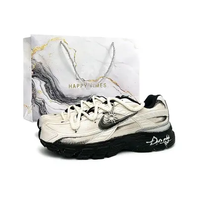 Эти кроссовки созданы на основе оригинальных мужских черно-белых городских кроссовок Nike Initiator с ретро-дизайном, амортизацией, воздухопроницаемостью и поддержкой. Дизайн вдохновлен постапокалиптическим приключением: верх украшен эффектом струйной печати, нанесённым вручную, и простыми линейными рисунками.