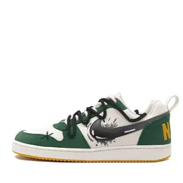 Эти фирменные кроссовки созданы на основе оригинальной модели Nike Court Borough Low Prem - универсальных, нескользящих, прочных низких кроссовок для мужчин в белом, зеленом и желтом цветах.