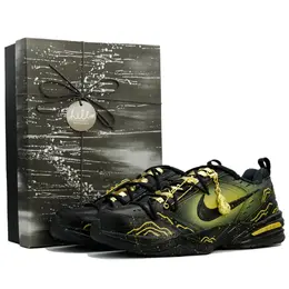 Мужские и женские кроссовки Nike Air Monarch 4 Black Gold Dominator с коробкой, устойчивые к истиранию, низкие, массивные, черные с черно-золотым оттенком (мраморная коробка) 415445-001(team335-黑金霸影礼盒版) | black gold shadow (marble box)