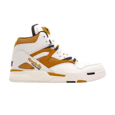 Reebok Pump Omni Zone 2 Radiant Ochre представляет собой сдержанную цветовую гамму винтажных кроссовок с обручами, которые носил Ди Браун, когда он выиграл конкурс Slam Dunk Contest 1991 года. Верх из гладкой белой кожи с контрастными оттенками темно-бежевого цвета на сетчатой подкладке и клетке из ТПУ. Знаменитая кнопка Pump на язычке активирует индивидуальную посадку обуви. Белая межподошва из ЭВА оснащена амортизацией Hexalite, видимой через прозрачное окошко в резиновой подошве.