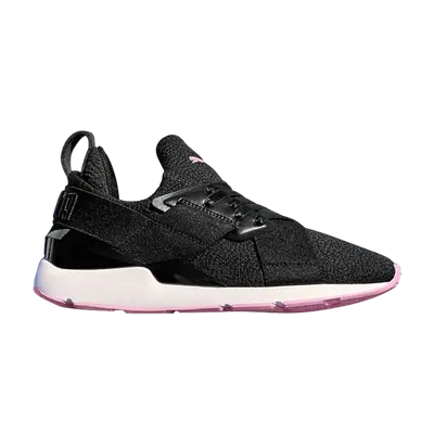 Модель Puma Wmns Muse Trailblazer 'Black Pink', входящая в коллекцию космических гонщиков Puma Trailblazer, представлена в основном в черном цвете и имеет нескользящий текстильный верх, создающий ощущение носка, с уникальной системой застегивания шнурков и ремешков. Задний ремешок украшен логотипом Puma, а на язычке расположен розовый логотип Puma. Блестящая черная накладка защищает носок, а подошва из пеноматериала IGNITE обеспечивает поддержку снизу, чуть выше подошвы с розовыми вкраплениями.