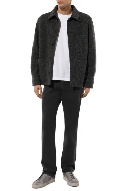 Для пошива серых кедов выбрали мягкую бархатистую замшу, тщательно выделанную вручную. Шнуровку модели заменили эластичными лентами, поэтому она подойдет для стопы с любым подъемом. Пару с перфорацией по бокам, обеспечивающей циркуляцию воздуха, установили на широкую почти нескользящую подошву.