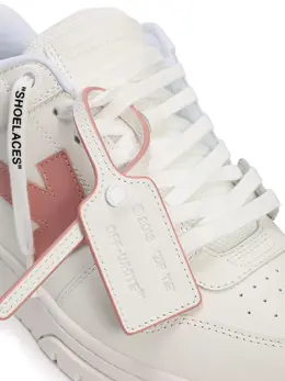 -Белые кеды из кожи от OFF-WHITE. -Модель с закругленным перфорированным мысом, толстой резиновой подошвой, функциональной шнуровкой, логотипами на боковых панелях и задниках, внутренней отделкой из текстиля.