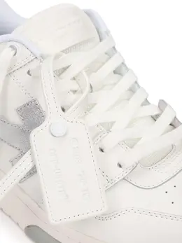 -Белые кеды из кожи от OFF-WHITE. -Модель с закругленным перфорированным мысом, толстой резиновой подошвой, функциональной шнуровкой, логотипами на боковых панелях и задниках, внутренней отделкой из текстиля.