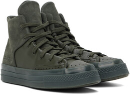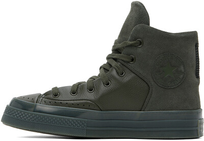 Цвет хаки - Кожаные высокие кеды Chuck 70 Marquis. Высокие кроссовки из зерненой кожи и замши со вставками цвета хаки. Перфорированная деталь на носке Шнуровка Мягкий язычок и воротник Тихий логотип на внешней стороне Нашивка с логотипом на внутренней стороне Мягкая стелька из пеноматериала CX Сетчатая подкладка Полупрозрачная резиновая межподошва Резиновая подошва с протекторомЦвет поставщика: Cave green/Cave green Верх: кожа. Подошва: резина. Сделано во Вьетнаме.