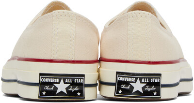 Off-White кроссовки Chuck 70. Низкие кроссовки из органической парусины кремового цвета. Резиновый носок Шнуровка Люверсы с внутренней стороны Прорезиненный логотип на пятке Мягкая стелька Ortholite® Пенорезина межподошва Резиновая подошва с рисунком.Цвет поставщика: Пергамент/Гранат/Цапля. Верх: текстиль. Подошва: резина. Сделано во Вьетнаме.