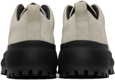 Серые низкие кеды. Низкие замшевые кроссовки серого цвета. · Резиновый носок Шнуровка· Мягкий язычок и воротник Петля на пятке Подкладка из зернистой телячьей кожи Текстурированная резиновая межподошва на платформе· Резиновая подошва с рисунком Платформа: H2» Цвет поставщика: Мел Верх: телячья кожа. Подошва: резина. Производство Италия.