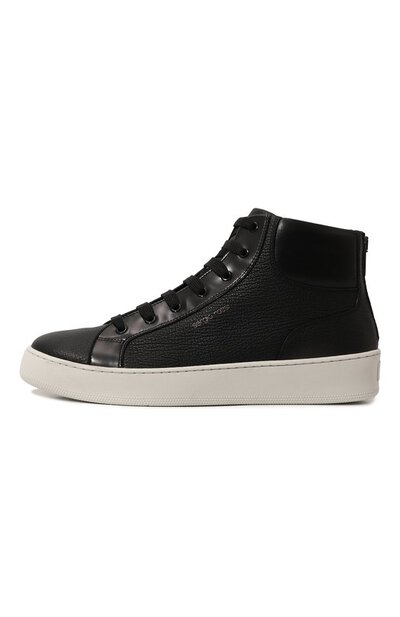 Высокие кеды Addict на контрастной широкой подошве сшили из зернистой и гладкой кожи. Пару с миниатюрным логотипом по бокам дополнили короткой молнией на заднике.