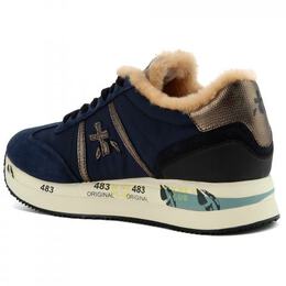Зимние кроссовки Premiata в тёмно-синем цвете пригодятся любителям активного образа жизни. Модель выполнена из текстиля, с вставками из замши на носке и пятке. Внутри подклад и стелька из натурального меха. Дизайн дополняет фирменный принт на резиновой подошве, и нашитый логотип. Кроссовки будут уместны как со спортивными джоггерами, так и с джинсами или брюками.