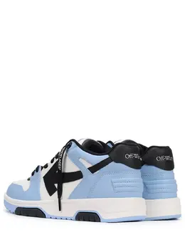 -Голубые кеды из кожи от OFF-WHITE. -Модель с закругленным перфорированным мысом, толстой резиновой подошвой, функциональной шнуровкой, логотипами на боковых панелях и задниках, внутренней отделкой из текстиля.