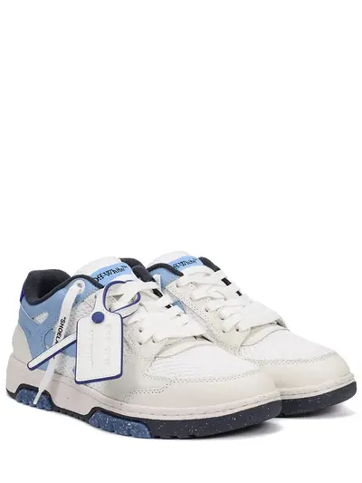 -Кеды из кожи, замши и текстиля от OFF-WHITE. -Модель с закругленным мысом, толстой резиновой подошвой, функциональной шнуровкой, логотипами на боковых панелях и задниках, внутренней отделкой из текстиля.