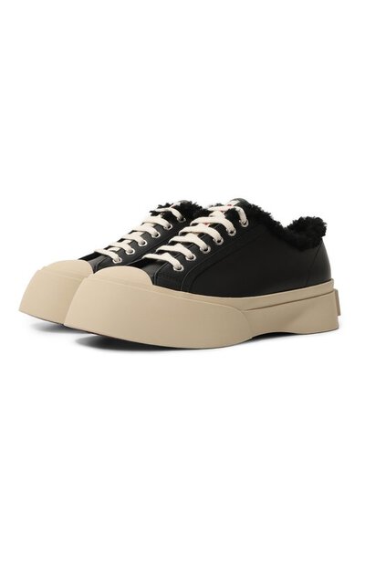 Кеды Pablo из телячьей кожи утеплили овчиной. Модель с двумя люверсами сбоку и накладкой на мысе поставили на контрастную широкую подошву, заходящую на мыс.