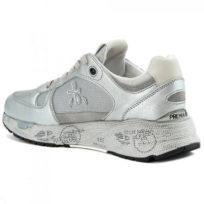 Серебристые кроссовки Premiata легко впишутся в базовый гардероб, даже несмотря на множество деталей в дизайне. Модель выполнена из натуральной кожи, на резиновой подошве, которая украшена стразами в тон пары. Внутри подклад и стелька из кожи. Сбоку пара дополнена нашивкой в виде эмблемы бренда. Кроссовки будут сочетаться с повседневными и спортивными аутфитами.