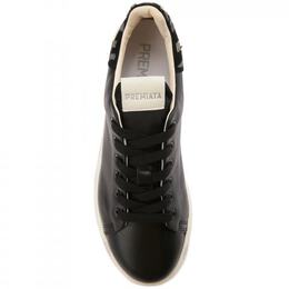 Чёрные кроссовки Premiata станут основой повседневных образов. Модель выполнена из натуральной кожи. Задник оформлен вышивкой виде логотипа бренда и декором и бусин. Высокая резиновая подошва с фирменным принтом поддерживает стиль пары. Кроссовки можно сочетать с любыми нарядами в стиле casual. Подкладка и стелька выполнены из натуральной кожи.