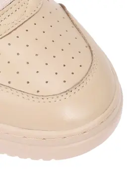 -Бежевые кеды из натуральной кожи от AUTRY. -Модель с закругленным перфорированным мысом, толстой резиновой подошвой, функциональной шнуровкой, логотипами бренда на язычках, боковых панелях и задниках, внутренней отделкой из тёплой овчины.