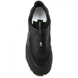 Чёрные кроссовки Premiata подойдут и для тренировок, и для прогулок, за счет легкости. Модель выполнена из текстиля и прорезиненных вставок спереди и на пятке. Внутри подклад и стелька из натуральной кожи, подошва – из резины. Вместо шнуровки пара дополнена молнией. Дизайн завершают вставки с изображением логотипа бренда, а также фирменный принт на подошве. Пару можно сочетать не только со спортивными костюмами, но и с повседневными аутфитами – джинсами и футболками.