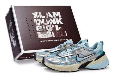 Кроссовки для бега V2K Run женские с низким верхом, синие, серебристые, черные Nike fd0736-100(team80-女款海蓝星辰s-box) | blue, silver, black