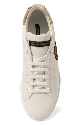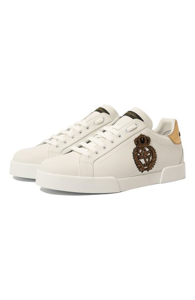 Белые кеды уже расстались со своим спортивным прошлым, получив статус универсальной обуви. Например, наши стилисты предлагают носить модель из весенне-летней коллекции с джинсовой рубашкой, карго и яркой футболкой. Для изготовления пары Доменико Дольче и Стефано Габбана выбрали мягкую гладкую кожу. Сбоку – эмблема бренда в геральдическом стиле, вышитая канителью.
